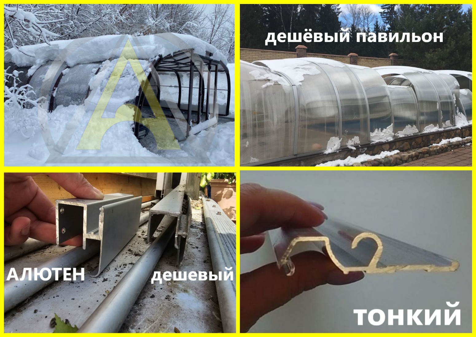 Завод АЛЮТЕН разработал собственную профильную систему ALUTEN, которая имеет толщину стенок несущего профиля 5мм(!), поэтому в Краснодаре павильоны для бассейнов АЛЮТЕН не нужно чистить зимой!